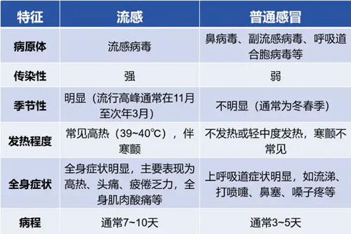 流感与普通感冒比有何不同?