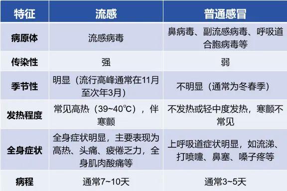 图:流感与普通感冒的区别